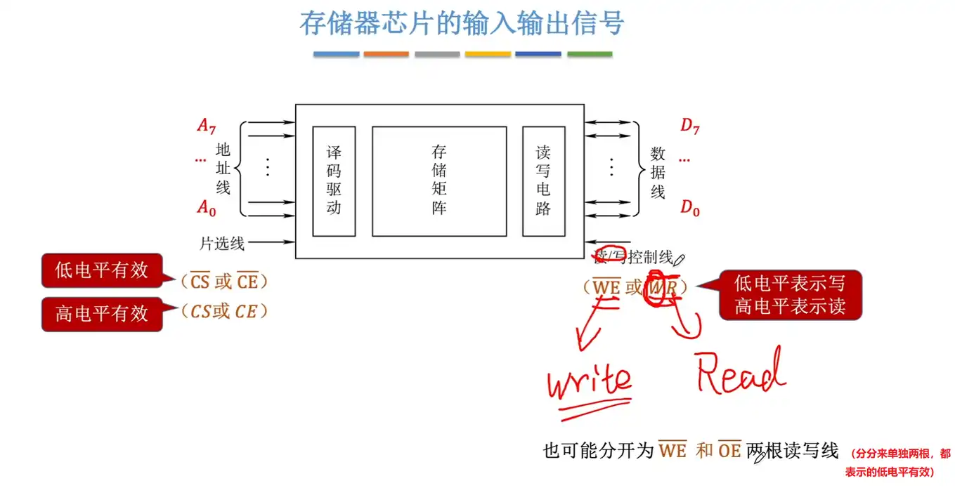 额外有两跟读 / 写控制线,由两种设计方案:①读写各单独一根。②读写一根线,根据输入的高低电平来确定是什么操作。
