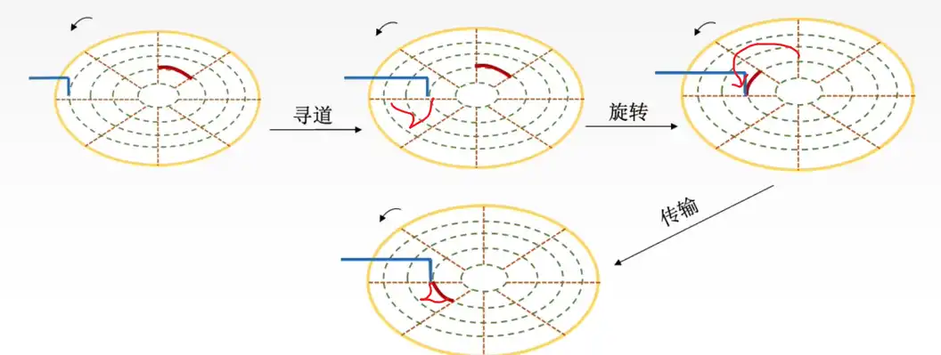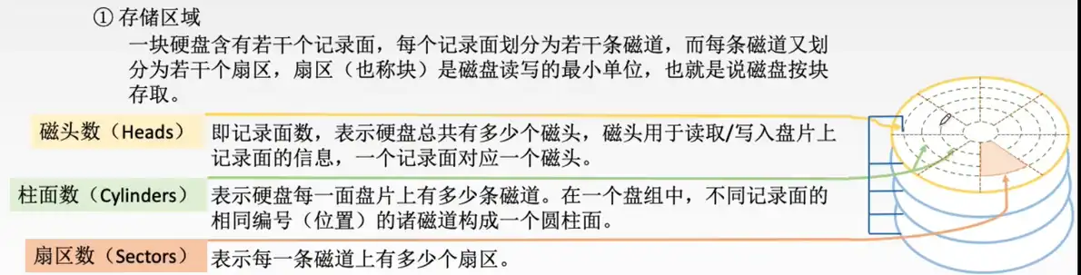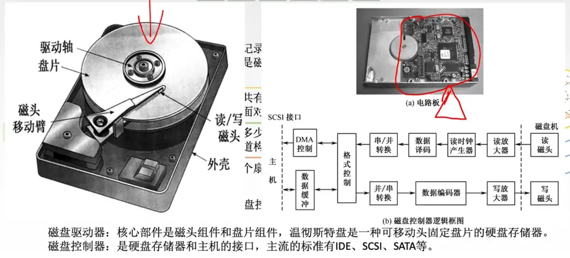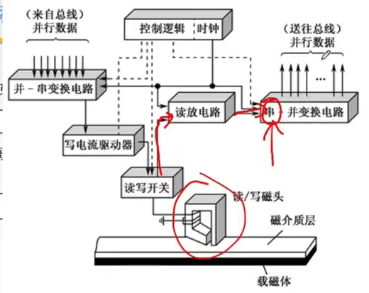 首先磁头臂会进行前后的移动到想要读取的区域,接下来会有个磁盘,不断滑动,这个磁盘就可以相应的读和写。