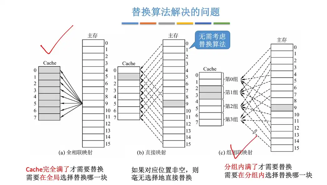 注意:只有读操作未命中 cache 时,才会将主存的这块地址调入 cache。