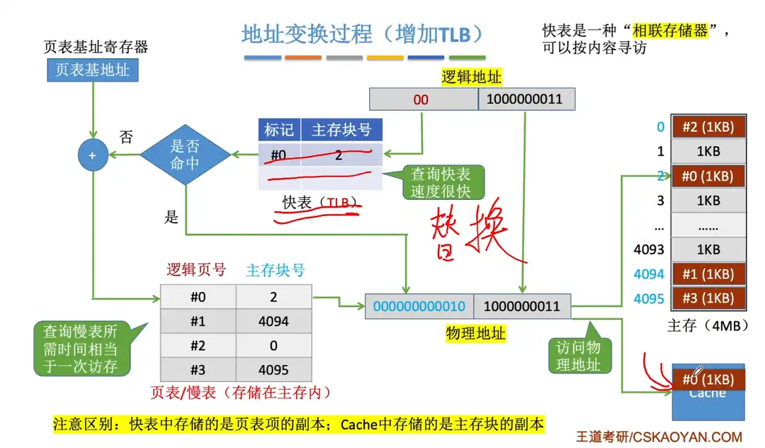2. 电路方面,快表采用 “相联存储器”,可以按照内容寻址。
