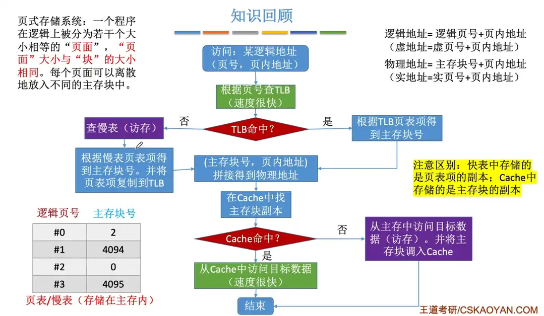 ③查询得到逻辑页号 + 主存块号后即可存入到快表,可供之后再次使用。