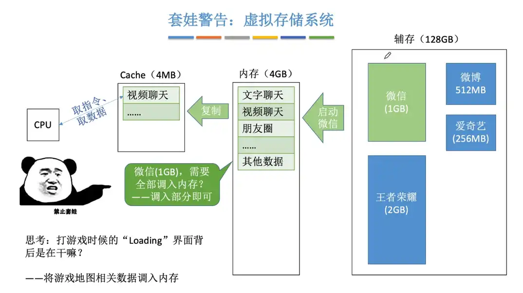 • 不会直接将整个序的代码数据连续的放入到内存中。