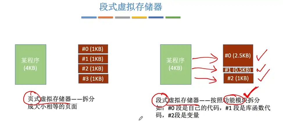 段式存储器:按照功能模块拆分,每一段大小不一样。