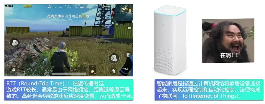 • RTT 指的是往返传输时延,当你发送一个指令让这个人往前走一步,接着游戏的服务器端收到指令给你返回一个对应的响应这一时延,称为 RTT。