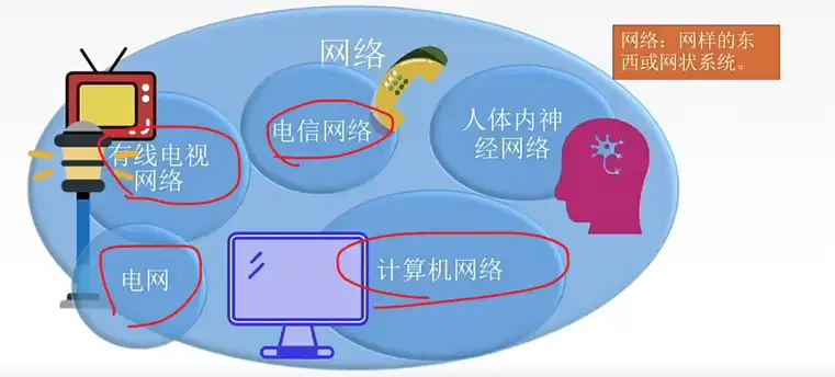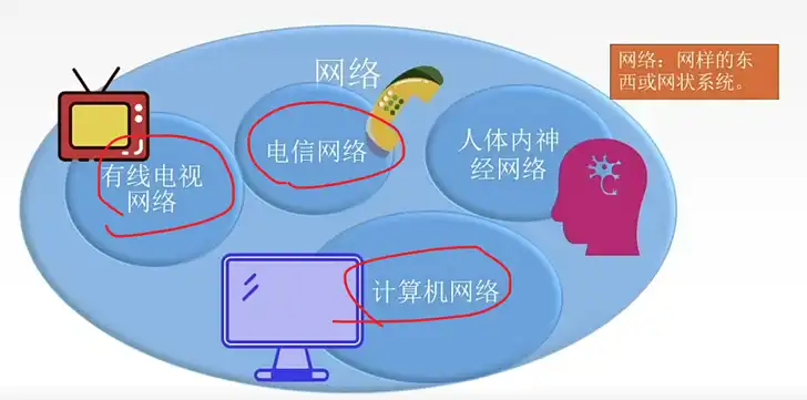 常说的三网指的是:电信网络、有线电视网络、计算机网络,上图画圈的。