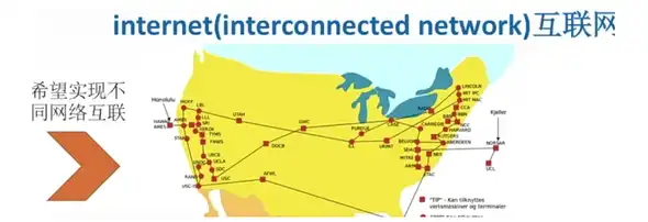 与此同时阿帕网在每一个节点后都介入了很多其他的终端,一些电脑,从而扩大了阿帕网的规模,但是有一个弊端则是阿帕网只能够连接到同一类型的网络,随着这个信息量的增长,它们系统可以实现不同网络的互连,也就是实现一个相互连接的网络interconnected network(简称internet,互联网)。