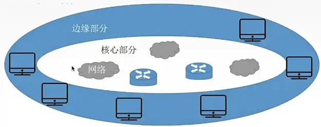 核心部分:计算机网络只有边缘部分不够,还需要使用核心部分的一些服务,通过核心部分提供服务,边缘部分才能够实现端系统与端系统之间的通信。