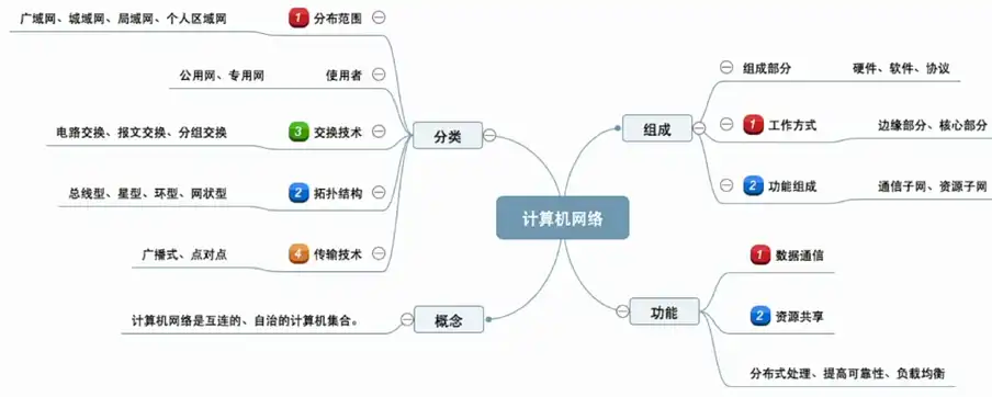 计算机网络:是一个将分散的、具有独立功能的计算机系统,通过通信设备与线路连接起来,由功能完善的软件实现资源共享和信息传递。