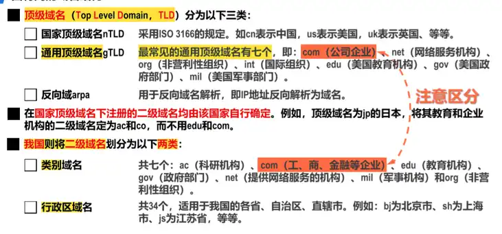• 各级域名由其上一级的域名管理机构管理,而最高的顶级域名则由因特网名称与数字地址分配机构ICANN进行管理