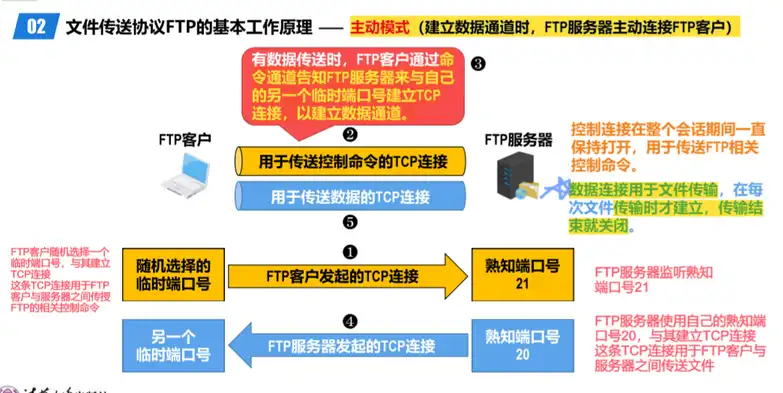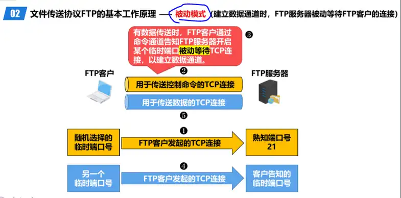 被动模式(建立数据通道时,FTP服务器被动等待FTP客户的连接)