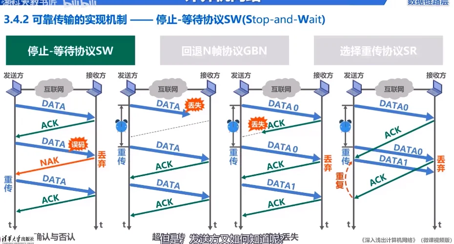 机制:确认与否认、重传、超时重传、给数据分组编号、给确认分组编号