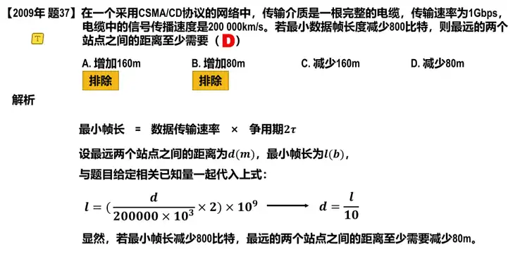 • 为了确保共享总线以太网上的每一个站点在发送完一个完整的帧之前,能够检测出是否产生了碰撞,帧的发送时延就不能少于共享总线以太网端到端的往返时间,即一个争用期