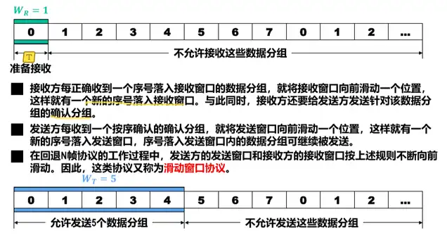 发送方的发送窗口和接收方的接收窗口按上述规则不断向前滑动,因此这类协议又称为滑动窗口协议