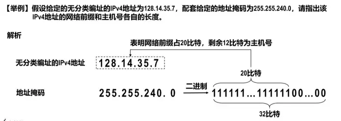 • 仅从 IPv 4 地址自身无法看出网络前缀和主机号各自的长度,必须配合地址掩码使用