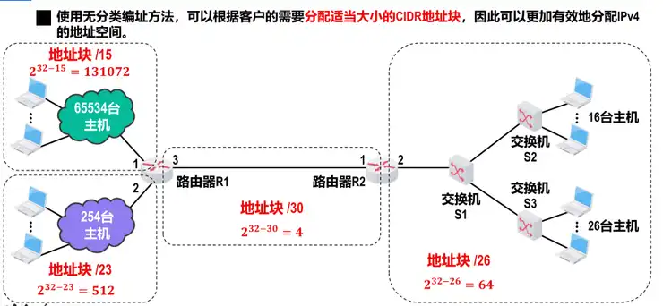• 用无分类编址方法,可以根据客户的需要分配适当大小的 CIDR 地址块,因此可以更加有效地分配 IPv 4 的地址空间
