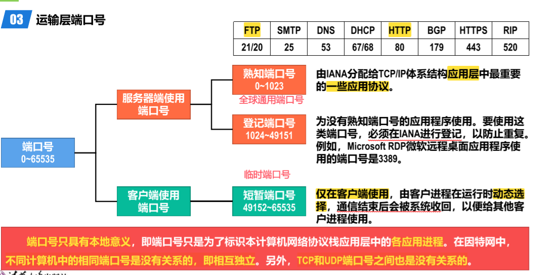 - 端口号的长度为 16 比特,取值范围是 0~65535。