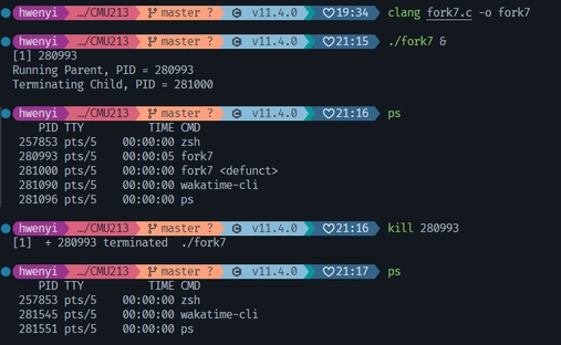 ps 命令显示:子进程的状态标记为 “defunct” 即,僵死进程