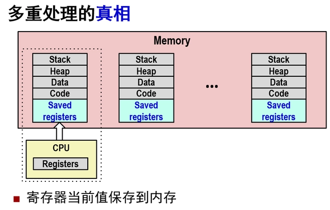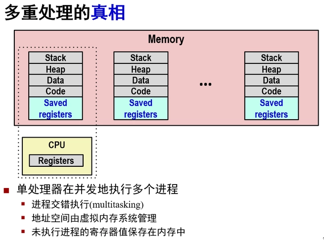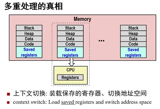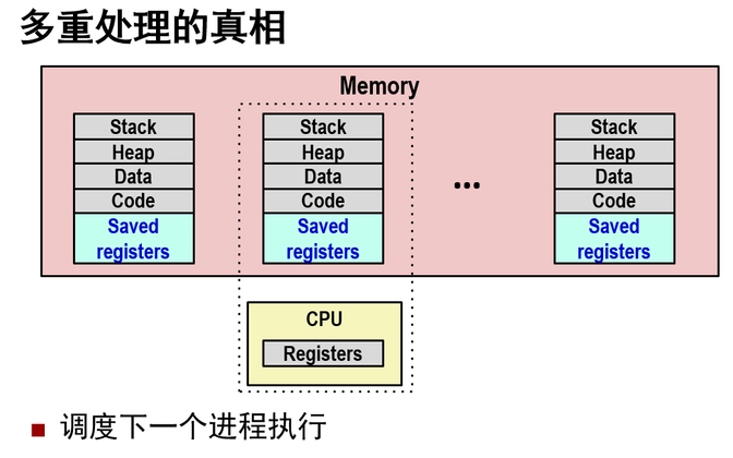 处理器的控制流可以被分为三个逻辑流,每个进程一个逻辑流,使得三个进程可以交错进行