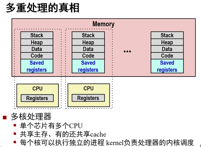 每个核可以执行独立的进程 kernel 负责处理器的内核调度