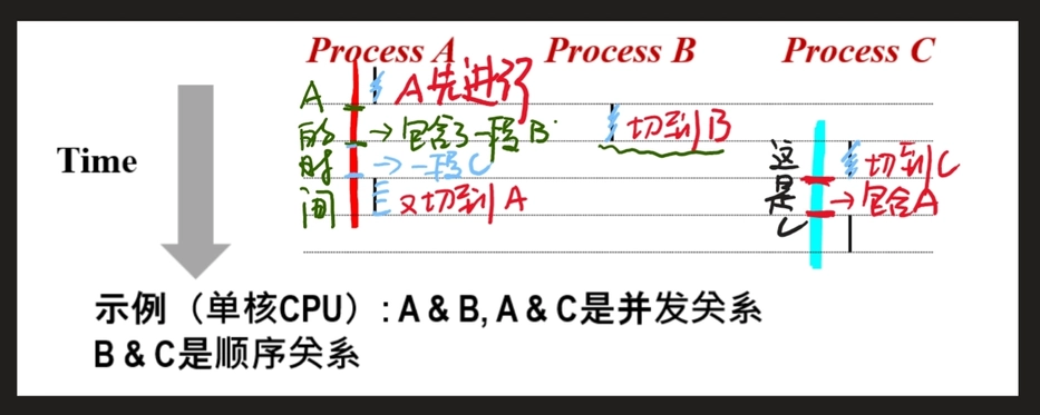 如果两个逻辑流在时间上有重叠,则称这两个进程是并发的(并发进程)