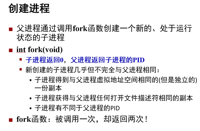 • 子进程虽然复制了父进程所有的地址空间的内容,但是二者具有独立的地址空间。