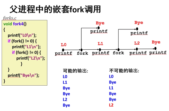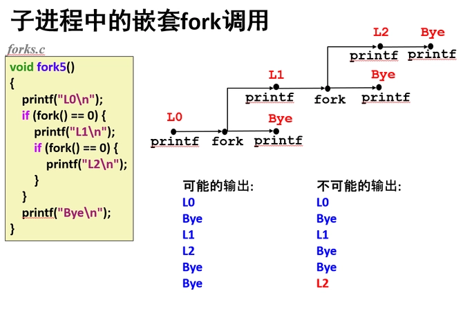 • 虽然子进程是父进程创建的,但是二者是独立并发执行的。也就是说,在一个计算机系统上,父进程先执行 Printf 打印,然后是子进程执行。然而在其他的系统上运行相同的程序时,很可能会得到相反的结果。所以,究竟是父进程先执行打印还是子进程先执行打印,对于不同的系统很可能是不同的