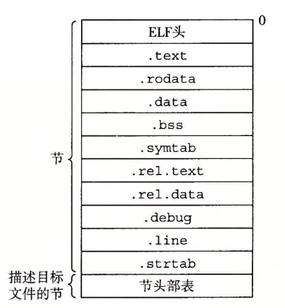- .line:原始 C 源程序中的行号和 .text 节中机器指令之间的映射。只有以 -g 选项调用编译器驱动程序时,才会得到这张表。