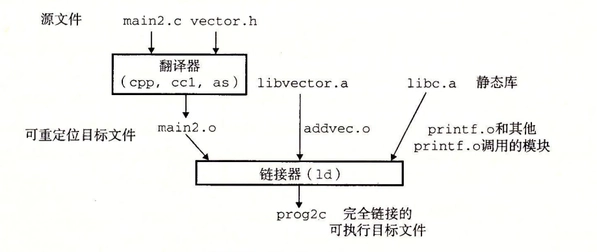 linux>gcc -static -o prog2c main2.o ./libvector.a或者等价地使用: