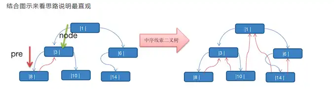 在二叉中序线索树中, 某结点若有左孩子, 则按照中序 “左根右” 的顺序, 该结点的前驱结点为左子树中最右的一个结点 (注意, 并不一定是最右叶结点)。