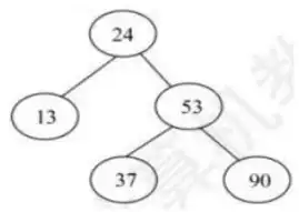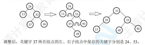 调整后, 关键字 37 所在结点的左、右子结点中保存的关键字分别是 24、53。