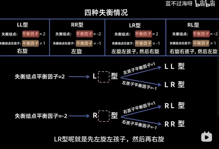 插入 48 以后, 该二叉树根结点的平衡因子由 -1 变为 -2 , 在最小不平衡子树根结点的右子树 (R) 的左子树 (L) 中插入新结点引起的不平衡属于 RL 型平衡旋转 (先右旋后左旋)。