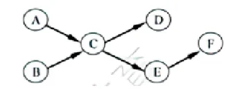 【2022 统考真题】某进程的两个线程 T1 和 T2 并发执行 A、B、C、D、E 和 F 共 6 个操作, 其中 T1 执行 A、E 和 F, T2 执行 B、C 和 D。下图表示上述 6 个操作的执行顺序所必须满足的约束:C在A和B完成后执行, D和E在C完成后执行, F在E完成后执行。