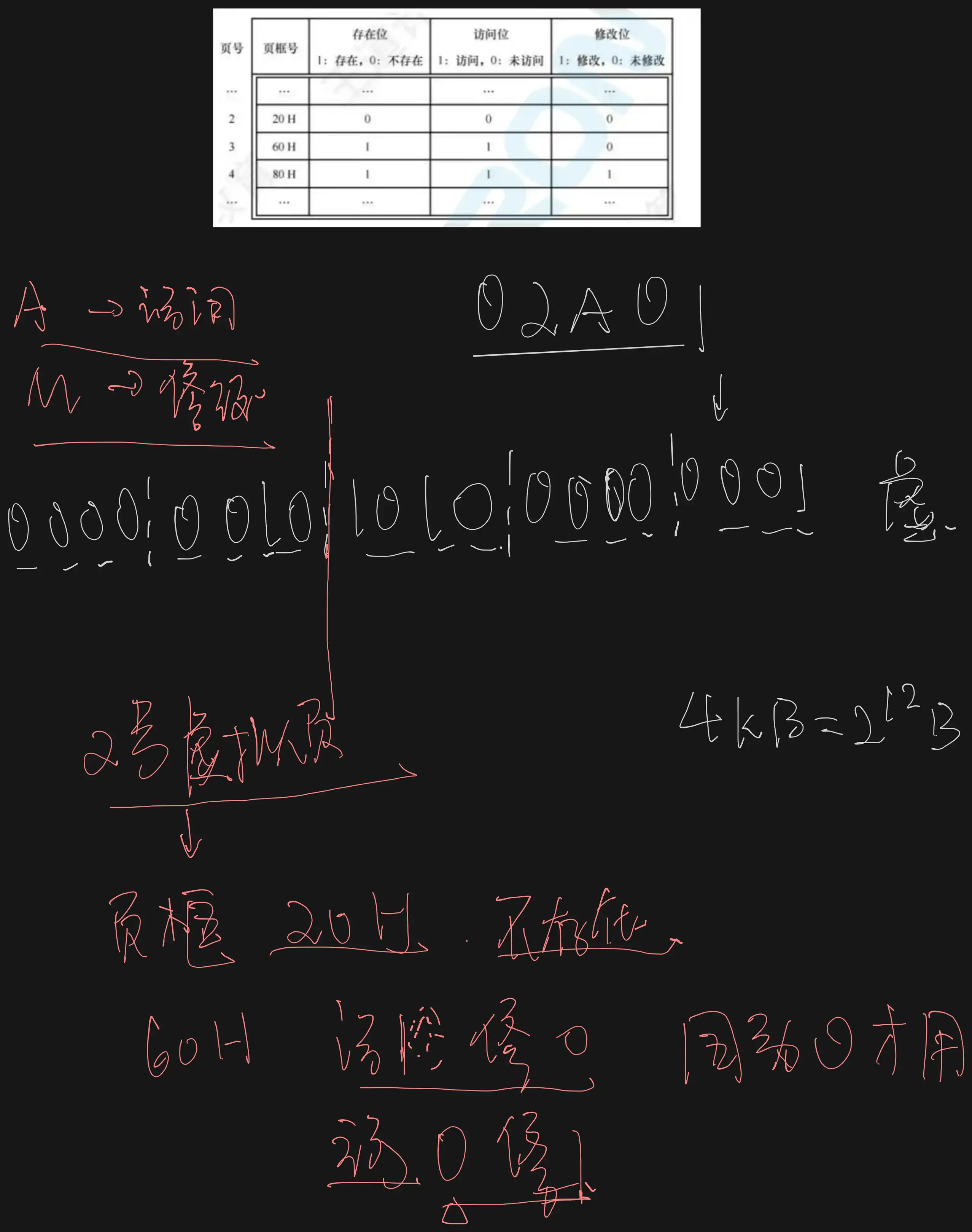 Q:【2021 统考真题】某请求分页存储系统的页大小为 4KB,按字节编址。系统给进程 P 分配 2 个固定的页框,并采用改进型 Clock 置换算法,进程 P 页表的部分内容如下表所示。