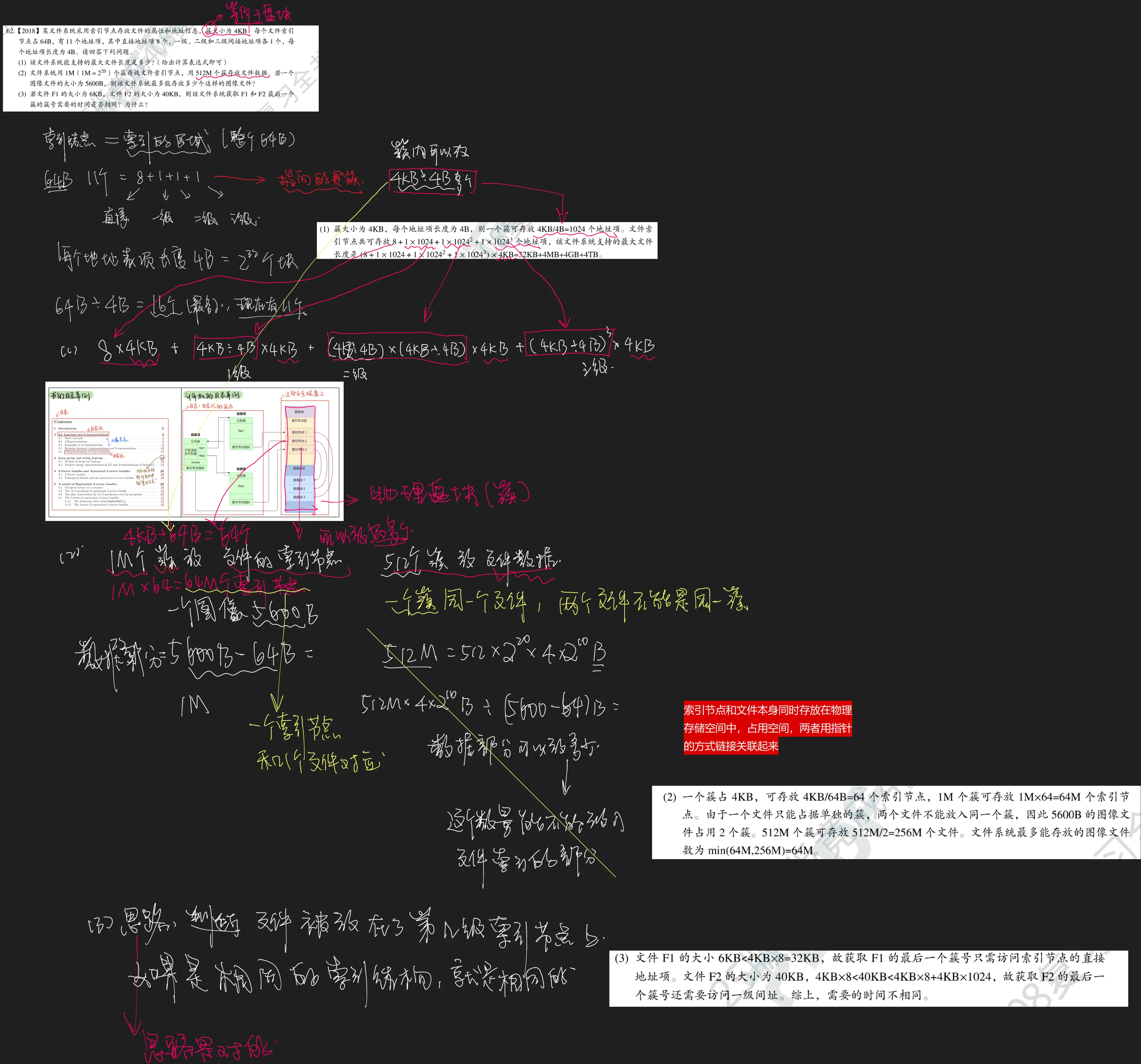 1. 该文件系统能支持的最大文件长度是多少? (给出计算表达式即可)