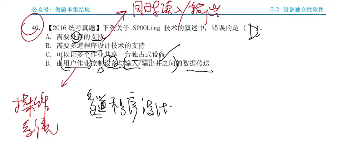 Q:【2016 统考真题】下列关于 SPOOLing 技术的叙述中, 错误的是 ( )。