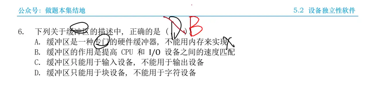 D. 缓冲区只能用于块设备, 不能用于字符设备