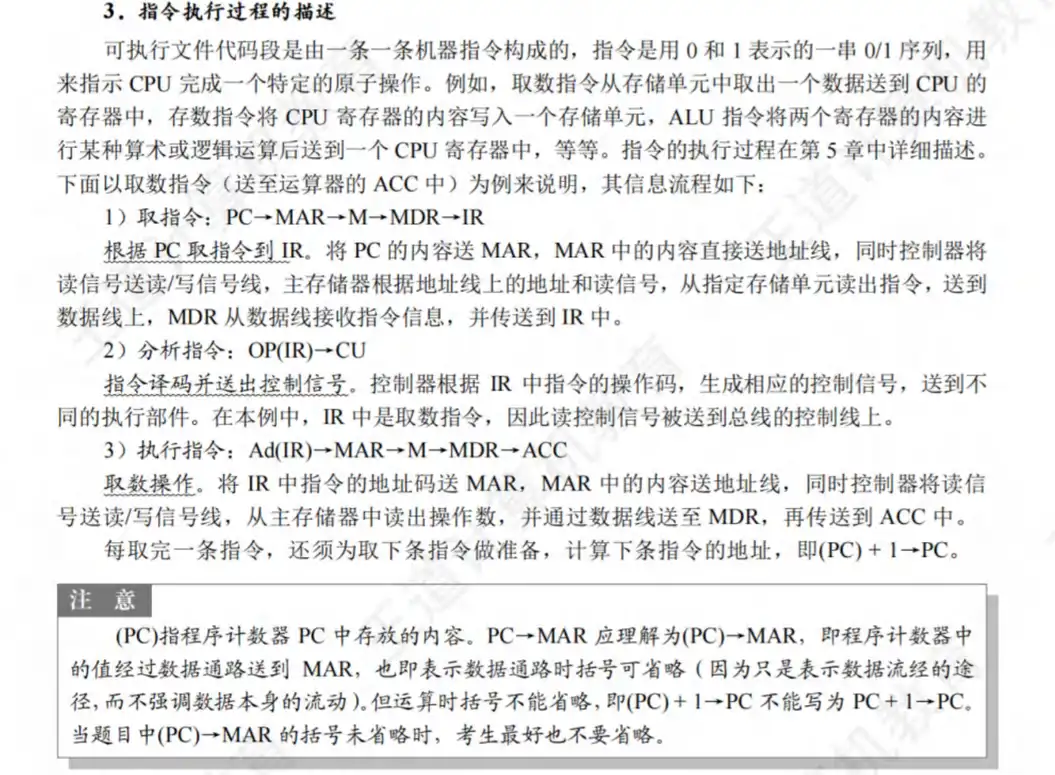 1. 取指令:将 PC 中的地址送至 MAR,从主存储器中读取指令,并将指令送至 IR。