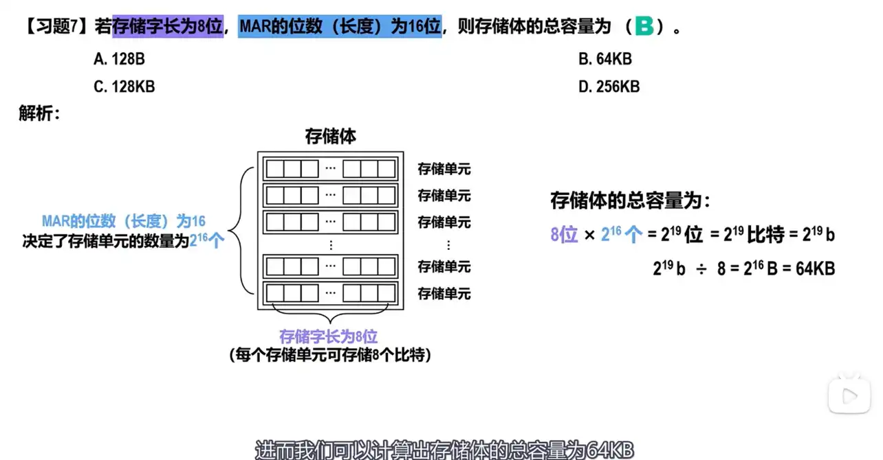 Q: MAR的位数为16位,存储字长为8位,存储体的总容量是多少?