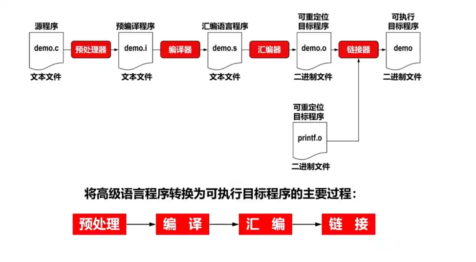 3. 汇编阶段:汇编器将汇编语言程序翻译成机器语言指令,并打包成可重定位目标文件。