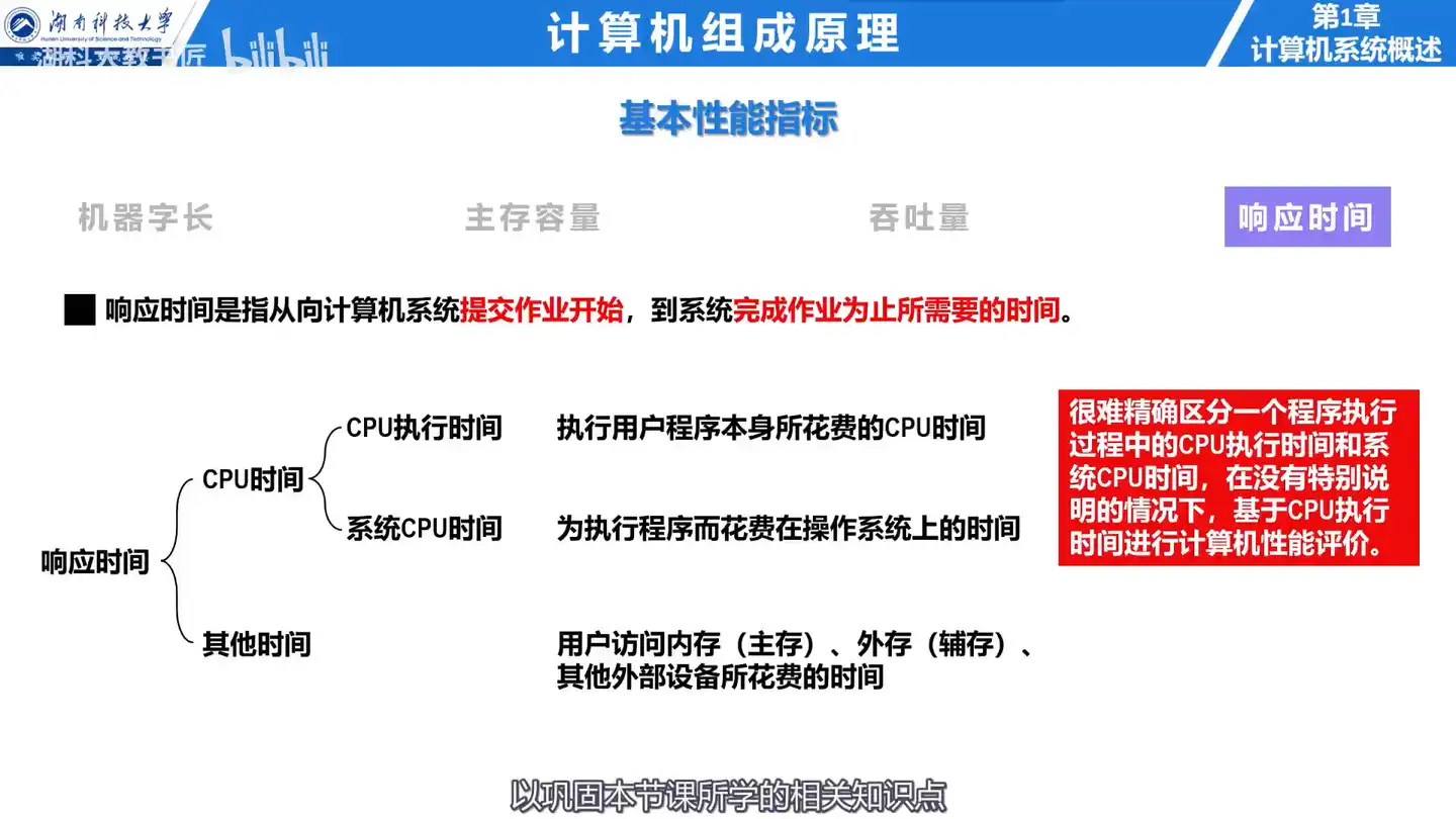 A: 响应时间包括CPU时间和其他时间,CPU时间又分为CPU执行时间和系统CPU时间。