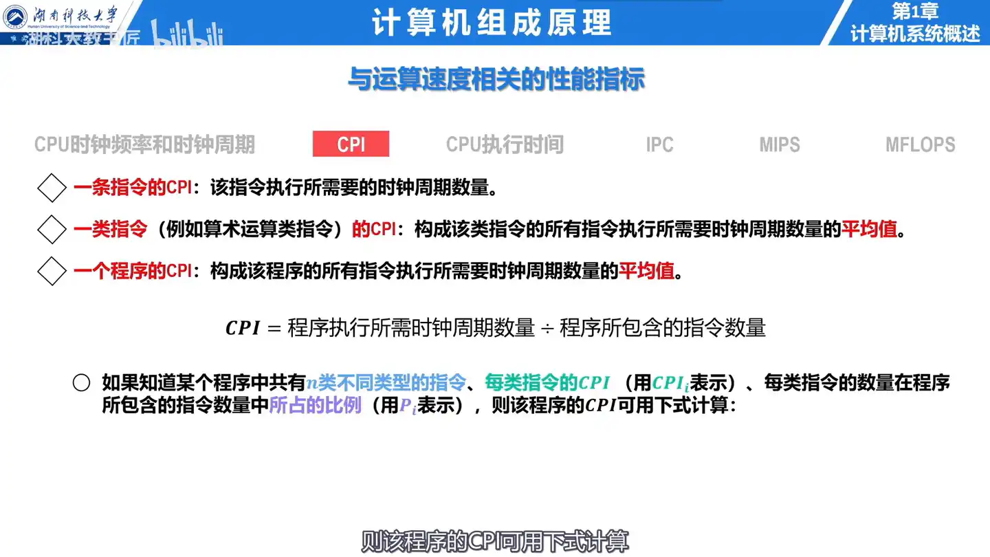 A: CPI = 程序执行所需时钟周期数量 / 程序所包含的指令数量。