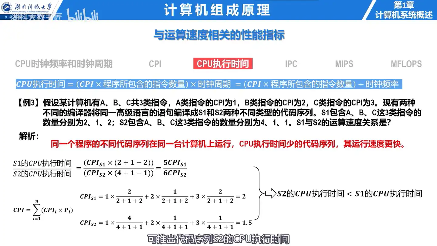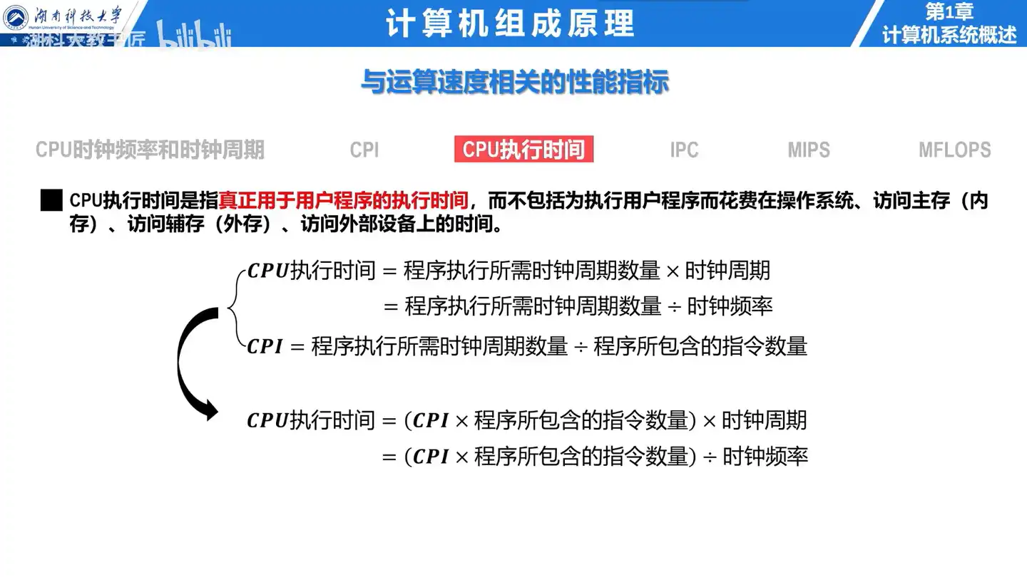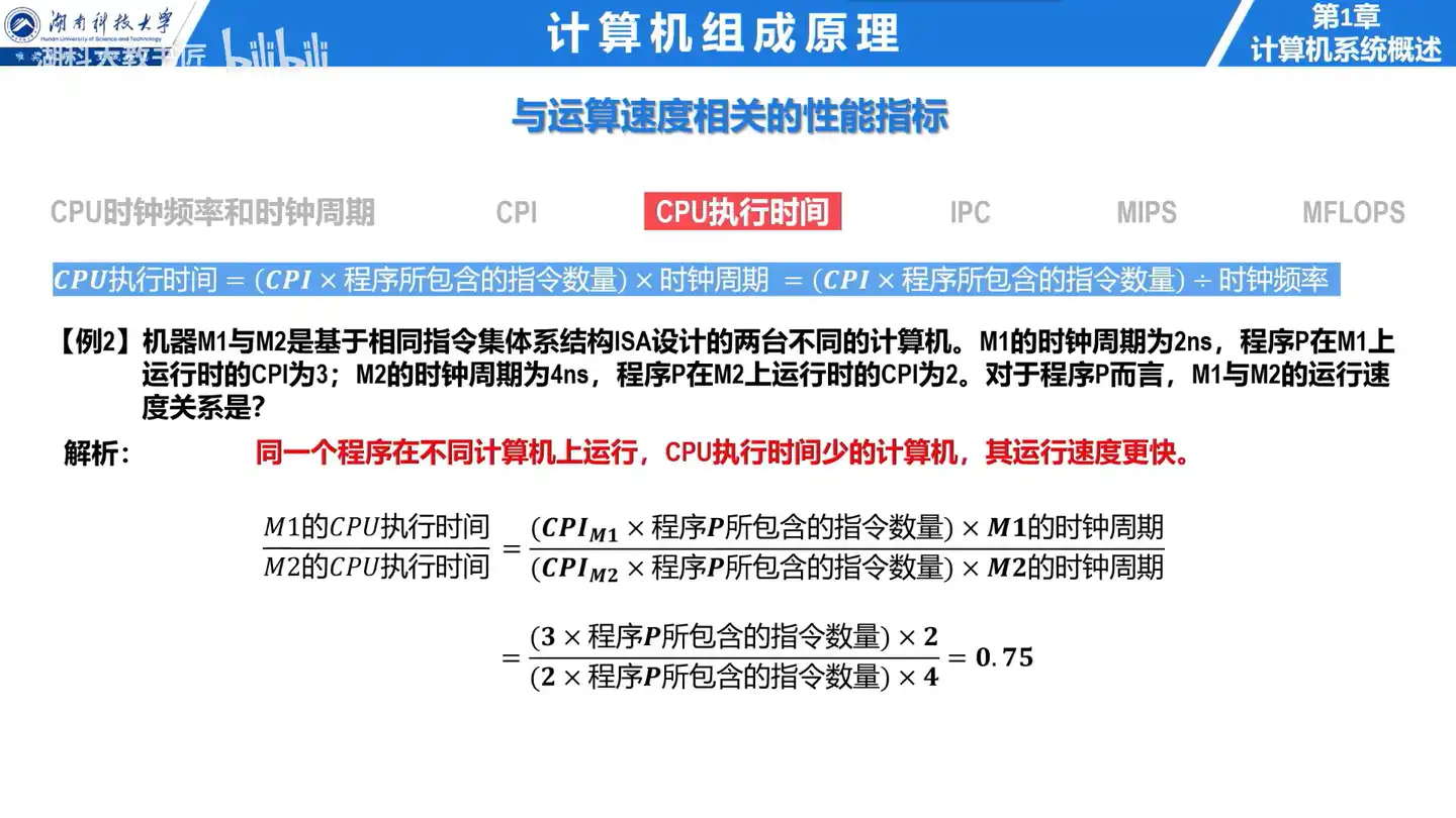 A: CPU执行时间 = 程序执行所需时钟周期数量 / CPU时钟频率。