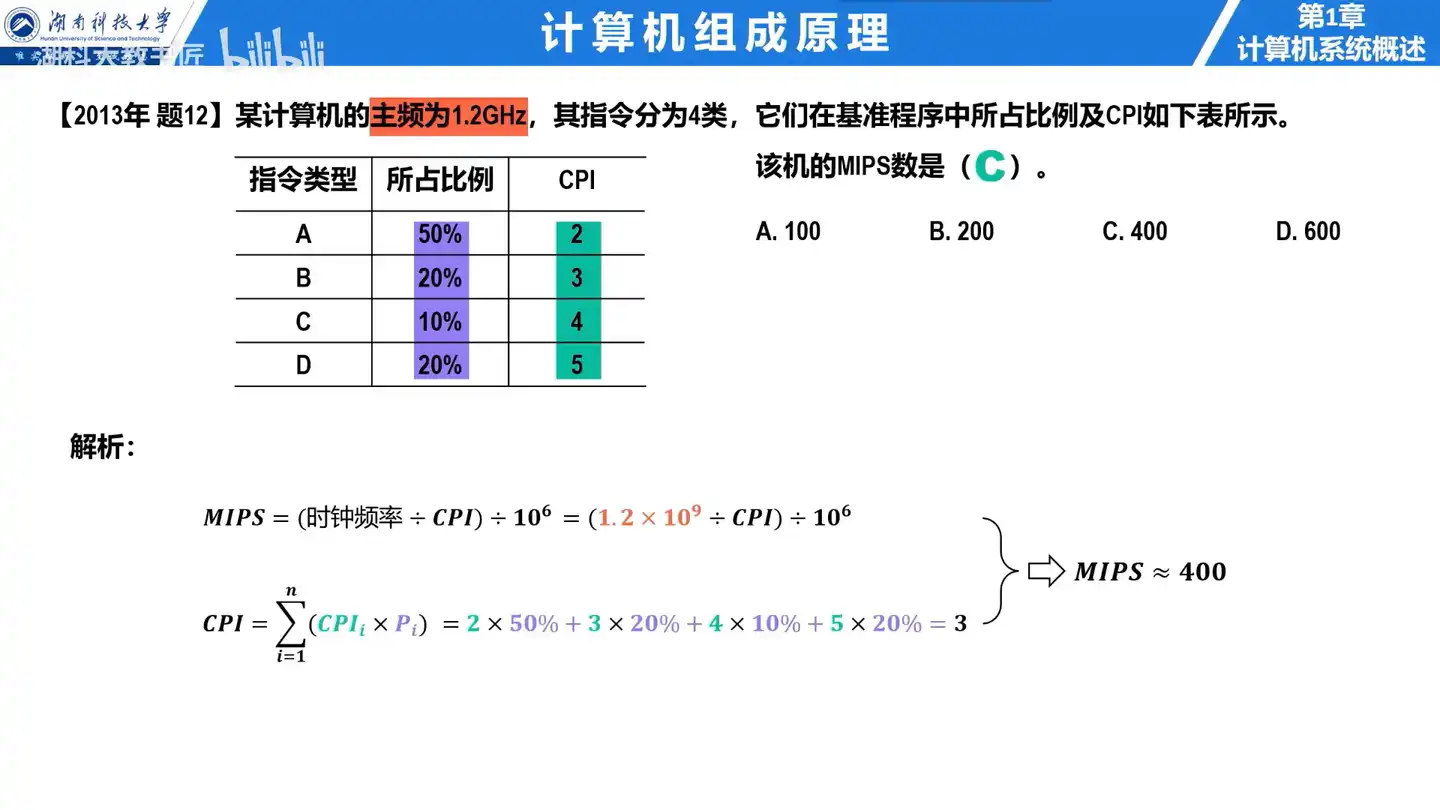 A: 使用公式 MIPS = (主频 / CPI)/ 10^6) 进行计算。