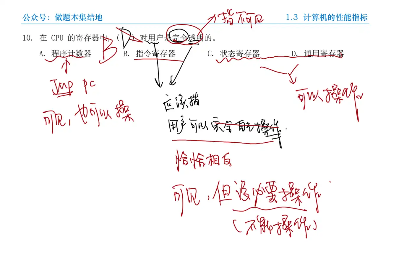 Q:在 CPU 的寄存器中, ( ) 对用户是完全透明的。