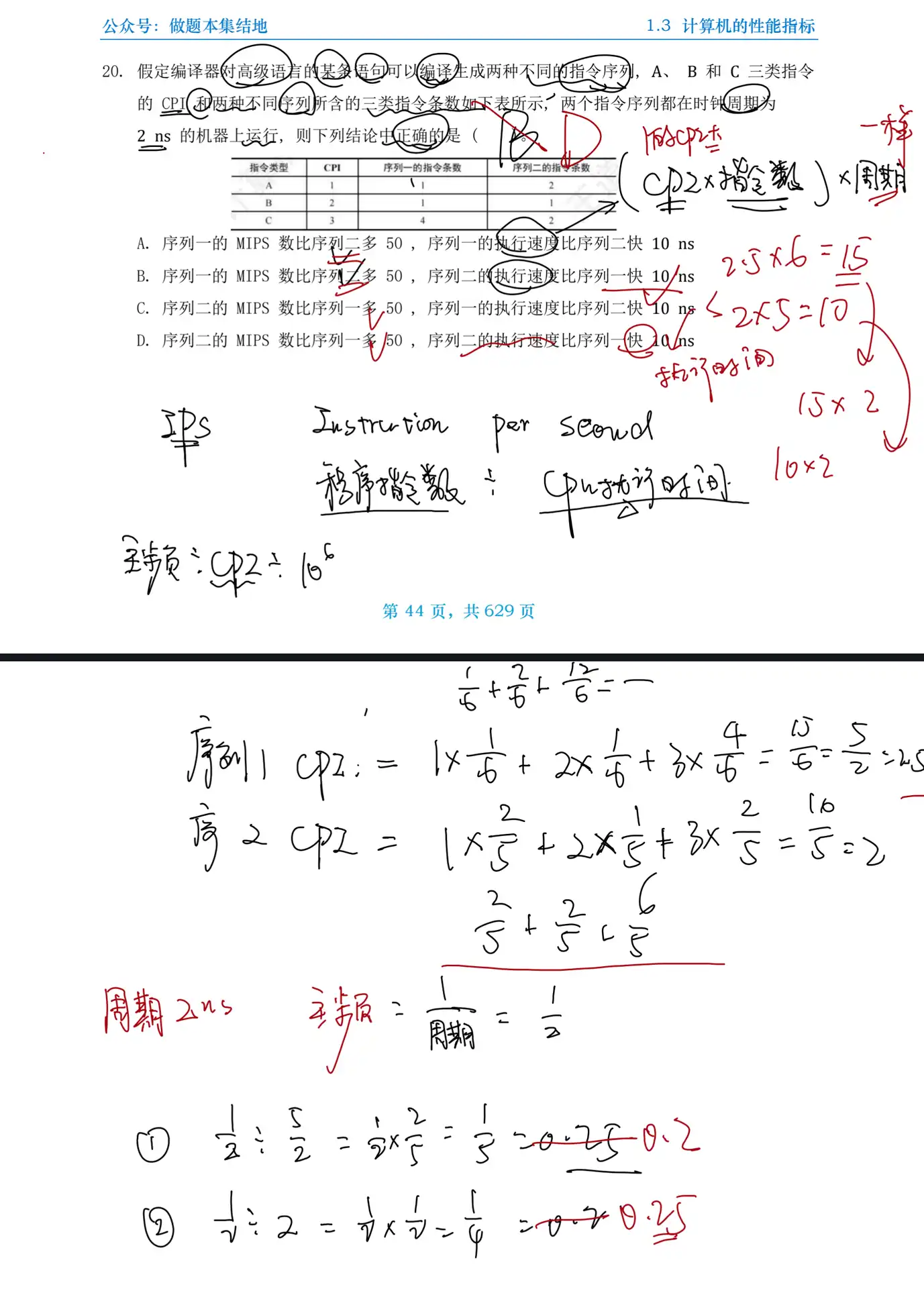 Q:假定编译器对高级语言的某条语句可以编译生成两种不同的指令序列, A、 B 和 C 三类指令的 CPI 和两种不同序列所含的三类指令条数如下表所示, 两个指令序列都在时钟周期为 的机器上运行,则下列结论中正确的是 ( ) 。
