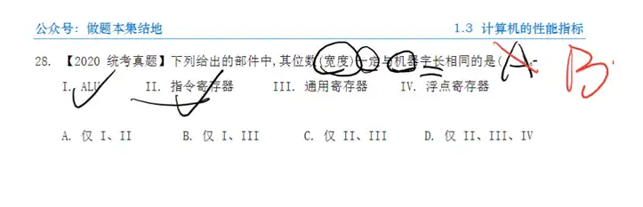 Q:【2020 统考真题】下列给出的部件中, 其位数 (宽度) 一定与机器字长相同的是 ( )。