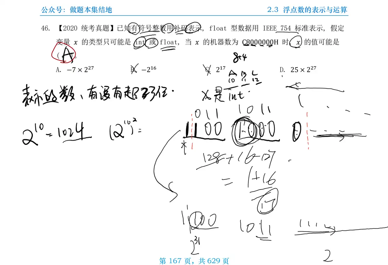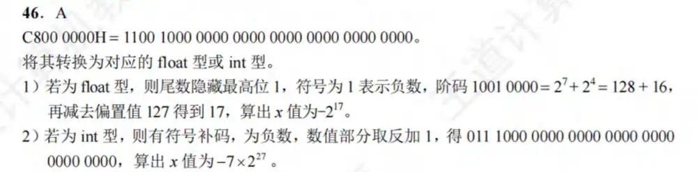 Q:【2020 统考真题】已知有符号整数用补码表示, float 型数据用 IEEE 754 标准表示, 假定变量
