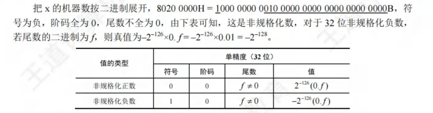 A:IEEE754的单精度浮点数E=0的时候是0或者非规格化数:所谓的非规格化也就是说,当阶码全0的时候,尾数是不带着这个隐含的1的,用来表示很小的小数