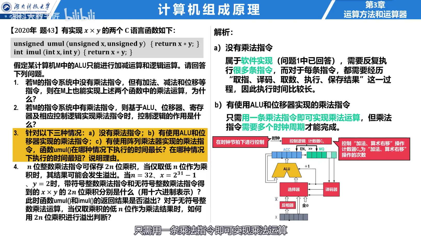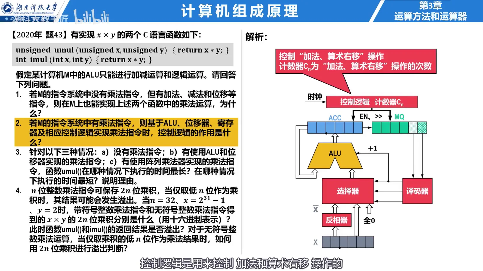 - 若M的指令系统中有乘法指令, 则基于 ALU、位移器、寄存器及相应控制逻辑实现乘法指令时, 控制逻辑的作用是什么?