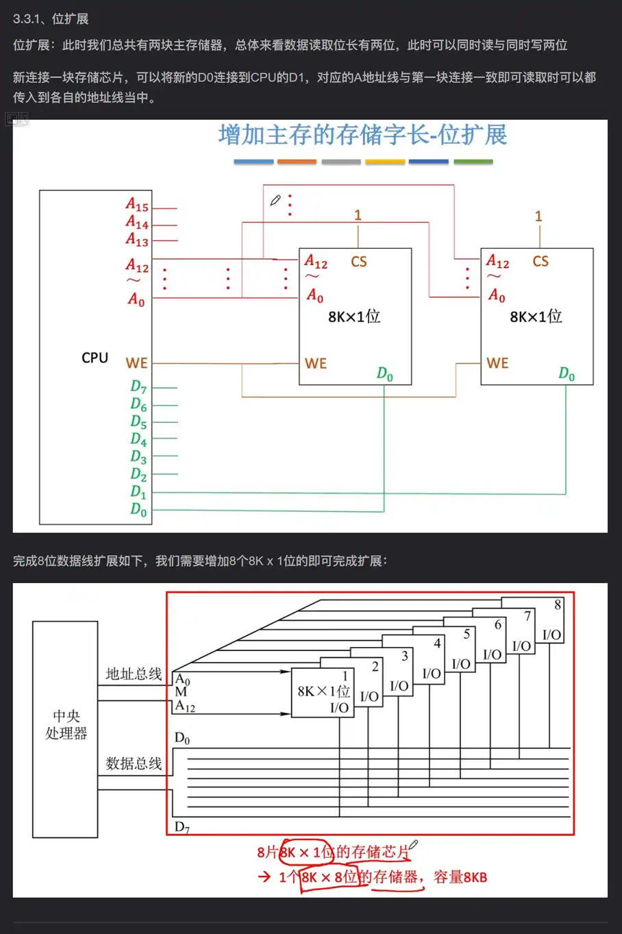 A: 由于单个存储芯片的容量是有限的,它在字数或字长方面与实际存储器的要求都有差距,因此需要在字和位两方面进行扩充才能满足实际存储器的容量要求。